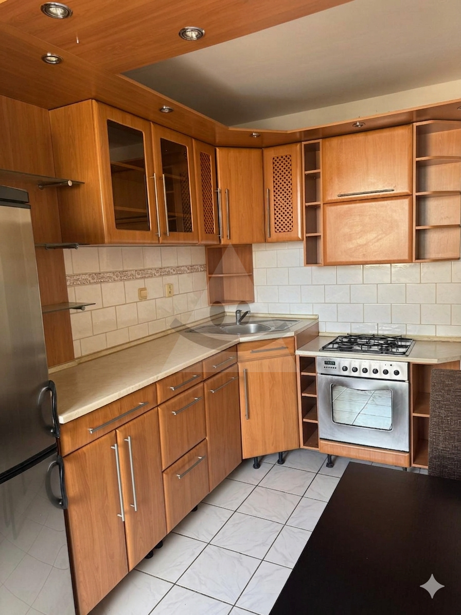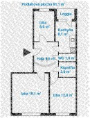 Condition and equipment: Area 62 m² (including loggia and cellar). The interior has undergone gradual reconstruction - plastic windows, floating floors combined with tiles and a functional kitchen.