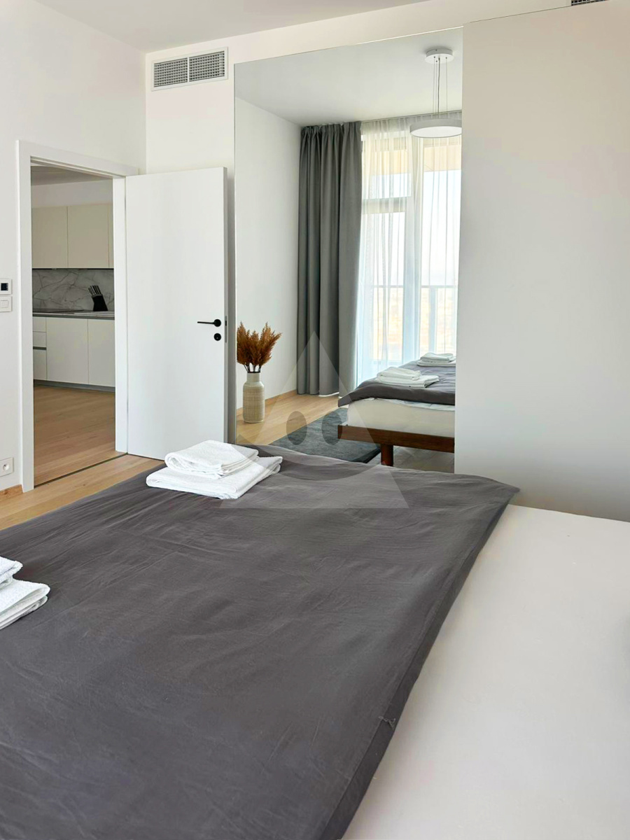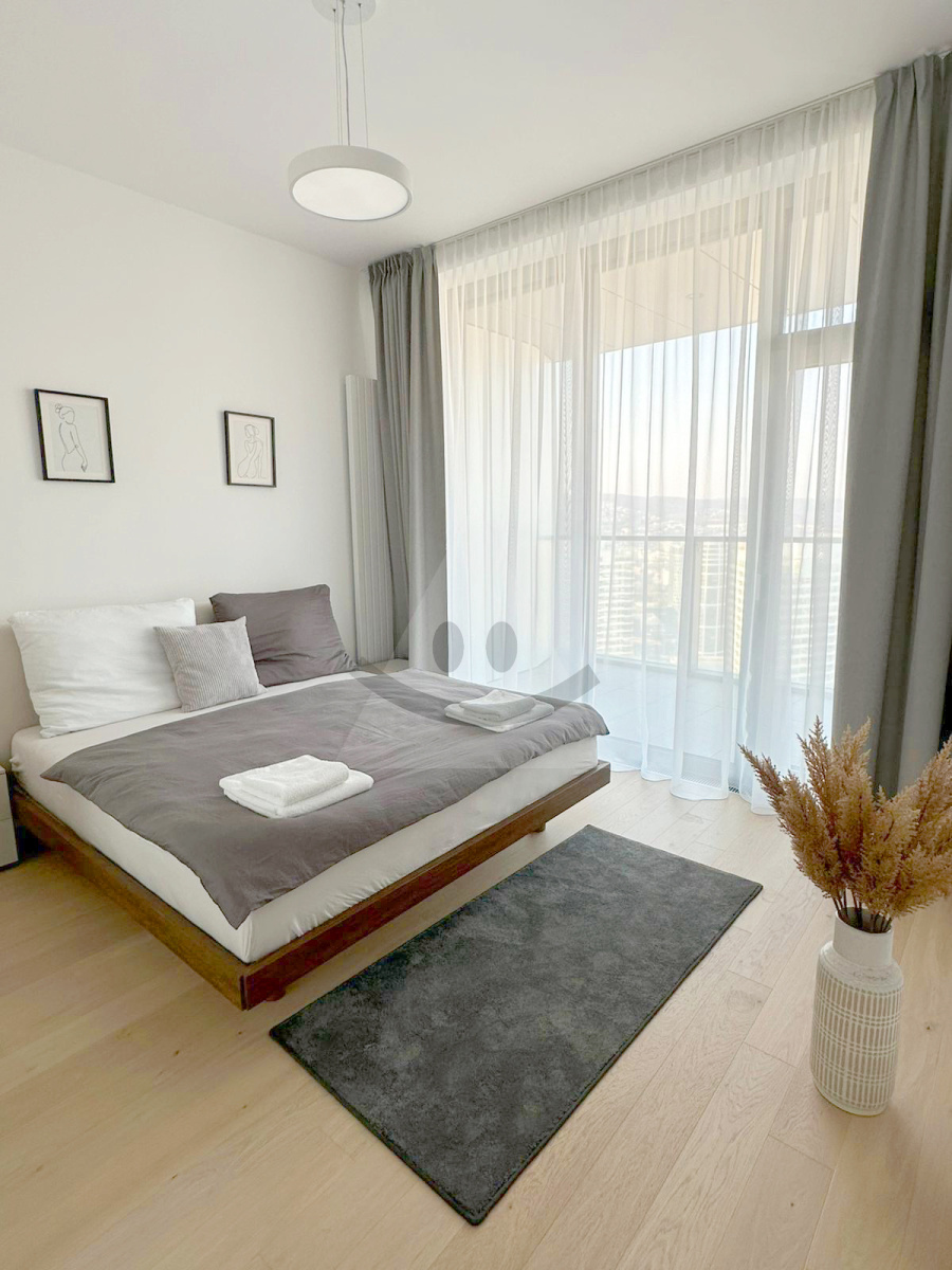 Reality Alpia offers you a luxury studio with a balcony for sale, /65m2/, Bratislava I. There is a 2-bedroom furnished space in the Eurovea Tower project, which offers a hallway, living room with kitchenette, bedroom, bathroom with toilet. New building with a beautiful view and above-standard services - part of the Eurovea Gallery shopping center, 24/7 reception, security service. Sought-after and unique location within Bratislava. Bonuses - 11m2 balcony accessible from two rooms and parking space. We will be happy to provide you with more information at tel. no.: 0948 353 500 or at dusan.pytel@realityalpia.sk.
